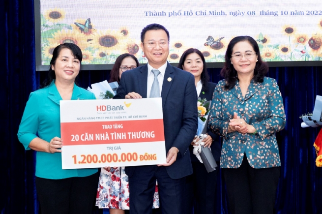 Gần đây, HDBank đã trao tặng kinh phí xây dựng hơn 600 căn nhà tình thương, tình nghĩa. HDBank còn thường xuyên triển khai các chương trình như tặng hàng chục nghìn thẻ Bảo hiểm y tế cho người cận nghèo; hỗ trợ kinh phí cho hàng ngàn ca phẫu thuật mắt đem lại ánh sáng cho người mù nghèo; trao tặng hàng chục máy lọc nước cho các tỉnh bị hạn xâm nhập mặn; xây tặng nhà tình thương; trao hàng trăm suất học bổng cùng nhiều hoạt động ý nghĩa khác.