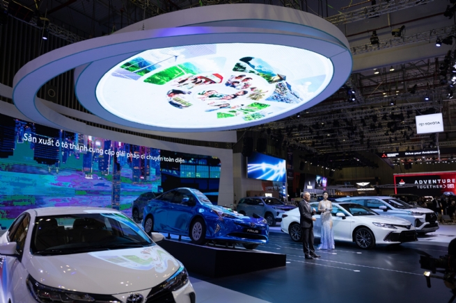 Là thương hiệu tiên phong về công nghệ Điện hóa với tầm nhìn hướng tới Trung hòa Carbon và hiện thưc hóa một xã hội bền vững, Toyota toàn cầu đã và đang cung cấp các sản phẩm điện hóa đa dạng, như xe Hybrid, xe Hybrid có sạc ngoài, xe thuần điện, xe chạy bằng khí Hydro… nhằm mang đến nhiều lựa chọn cho khách hàng. Dựa vào điều kiện của từng thị trường, Toyota sẽ giới thiệu những dải sản phẩm phù hợp. Tại thị trường Việt Nam, dòng xe Toyota Hybrid hiện được xem là giải pháp thiết thực nhất trong điều kiện hiện tại nhờ kết hợp 2 động cơ xăng và điện mang đến khả năng tiết kiệm nhiên liệu, thân thiện môi trường, vận hành mạnh mẽ và yên tĩnh tuyệt đối.Tại Triển lãm lần này, Toyota trưng bày các mẫu xe điện hóa, minh chứng cho những nỗ lực của Toyota trong việc giảm thiểu phát thải khí Carbon, qua đó tạo ra tương lai phát triển bền vững bằng nguồn năng lượng xanh.