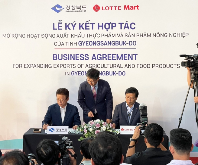 Tỉnh Gyeongsangbuk-do vừa ký kết biên bản ghi nhớ hợp tác (MOU) với Công ty Cổ phần Trung Tâm Thương Mại LOTTE Việt Nam (LOTTE Mart) nhằm thúc đẩy hoạt động xuất khẩu các mặt hàng nông sản và thực phẩm nổi tiếng của tỉnh đến thị trường Việt Nam. Thỏa thuận được kỳ vọng sẽ nâng tầm hợp tác song phương, qua đó giới thiệu rộng rãi cũng như đưa các sản phẩm trái cây chất lượng cao, an toàn và đặc trưng của tỉnh Gyeongsangbuk-do đến gần hơn với người tiêu dùng trong nước.