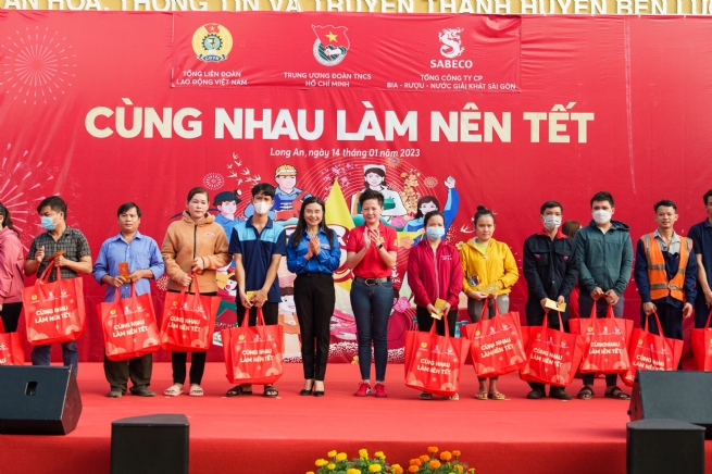 Theo đó, thay lời tri ân tới lực lượng lao động Việt Nam vì những đóng góp quý báu, bền bỉ trong lao động sản xuất, các phần quà Tết trị giá 700.000 đồng – mỗi phần gồm 300.000 đồng tiền lì xì và 400.000 đồng nhu yếu phẩm đã được phân phối tới 8000 công nhân có thành tích làm việc tốt nhưng còn gặp hoàn cảnh kinh tế khó khăn tại các tỉnh thành trải dài từ Vĩnh Phúc, Hà Nội, Quảng Ninh, Nghệ An, Phú Yên, Đắk Lắk, Tp. Hồ Chí Minh, Bình Dương, Long An, Tiền Giang và Sóc Trăng. Trong đó, hàng ngàn phần quà đã được đại diện lãnh đạo SABECO và Bia Saigon, lãnh đạo Tổng LĐLĐVN, cùng lãnh đạo Trung ương Đoàn TNCS Hồ Chí Minh gửi trao tận tay người lao động.