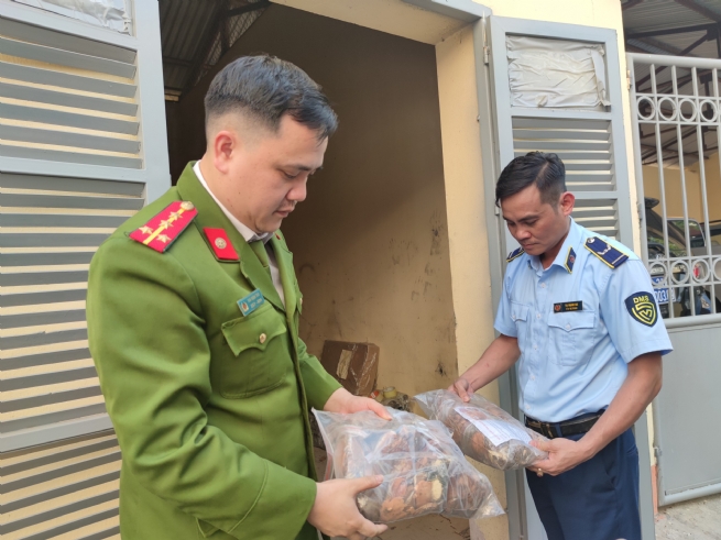 Hình ảnh lực lượng chức năng kiểm tra hàng hóa vi phạm