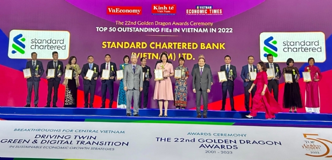 Mới đây, Ngân hàng Standard Chartered Việt Nam vừa được vinh danh “Ngân hàng nước ngoài xuất sắc nhất tại Việt Nam” năm 2022-2023, trong danh sách Top 50 doanh nghiệp FDI hàng đầu Việt Nam thuộc hạng mục giải thưởng Rồng Vàng năm 2023 do tạp chí Vietnam Economic Times bình chọn. Đây là minh chứng cho cam kết vững mạnh của Ngân hàng cũng những nỗ lực không ngừng để thúc đẩy phát triển bền vững nền kinh tế và các khách hàng.