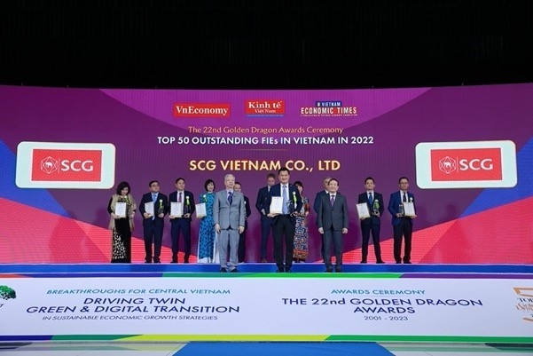 Mới đây, tại Lễ trao giải Rồng Vàng 2023, SCG được vinh danh trong Top 50 Doanh nghiệp có vốn đầu tư nước ngoài (FIEs) tiêu biểu tại Việt Nam và vinh dự đạt được danh hiệu “Doanh nghiệp tiên phong thực hiện ESG tại Việt Nam”.