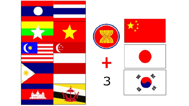ASEAN +3 gồm các nước ASEAN và Trung Quốc, Hàn Quốc, Nhật Bản
