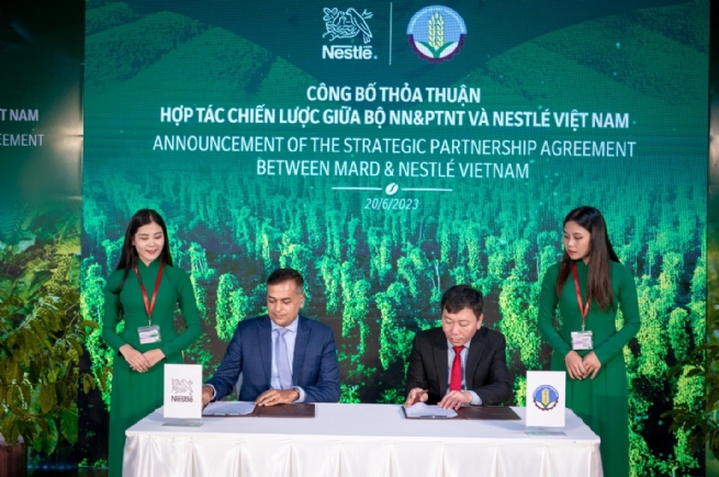 Ngày 20/06, Nestlé Việt Nam và Bộ NN-PTNT chính thức công bố Bản ghi nhớ (MOU) về tăng cường hợp tác công tư nhằm thúc đẩy phát triển nền nông nghiệp bền vững, nông nghiệp tái sinh và phát thải thấp thông qua Chương trình Đối tác Phát triển nông nghiệp bền vững Việt Nam (PSAV). Hoạt động này nằm trong khuôn khổ cuộc gặp gỡ và làm việc giữa lãnh đạo Bộ NN-PTNT và ông Mark Schneider, Giám đốc điều hành Tập đoàn Nestlé - tập đoàn thực phẩm hàng đầu thế giới.