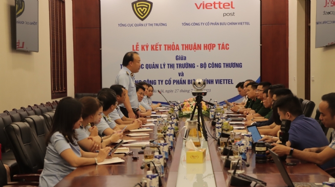 Sáng ngày 27/7, tại Hà Nội, Tổng cục Quản lý thị trường (QLTT) tiến hành ký thỏa thuận hợp tác với Tổng công ty cổ phần Bưu chính Viettel (Viettel Post) trong kiểm tra và xử lý đối với hàng hóa vi phạm quy định của pháp luật gửi qua đường bưu chính trong nước.