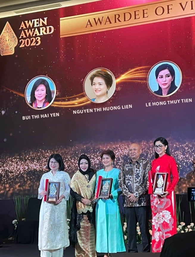 Lễ trao Giải thưởng AWEN AWARD 2023 do Mạng lưới nữ doanh nhân ASEAN - ASEAN Women Entrepreuner Network (AWEN) tổ chức, trong khuôn khổ Hội nghị thượng đỉnh Nữ doanh nhân Asean tại Jakarta, Indonesia ngày 2/9/2023, bên lề hội nghị Cấp cao Asean lần thứ 43.