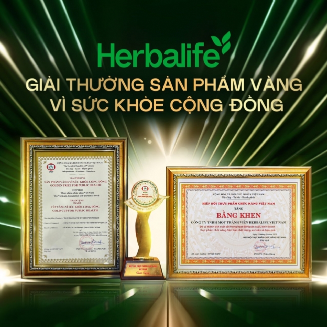 Được xét chọn từ hàng trăm ứng viên là các doanh nghiệp trong nước và quốc tế đang hoạt động tại Việt Nam, Herbalife Việt Nam, một trong những công ty và cộng đồng hàng đầu về sức khỏe, đã vinh dự được trao giải thưởng “Sản phẩm vàng vì sức khỏe cộng đồng 2023”. Đây là lần thứ tám liên tiếp các sản phẩm chất lượng cao của công ty được Hiệp hội Thực phẩm chức năng Việt Nam (VAFF) trao giải thưởng uy tín này.