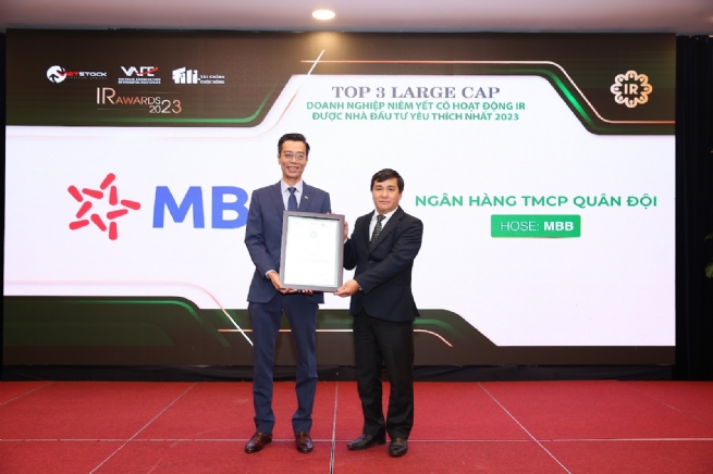 Tiếp nối năm 2022, năm nay, MB tiếp tục ghi danh vào Top 3 doanh nghiệp được nhà đầu tư yêu thích nhất. MB được Ban tổ chức IR Awards 2023 đánh giá cao là doanh nghiệp niêm yết “tuân thủ hoạt động công bố thông tin, có quản trị chiến lược, truyền thông tài chính minh bạch, đạt được hiệu quả giao tiếp giữa doanh nghiệp, cộng đồng tài chính cùng các thành phần khác, từ đó tối ưu giá trị doanh nghiệp.”