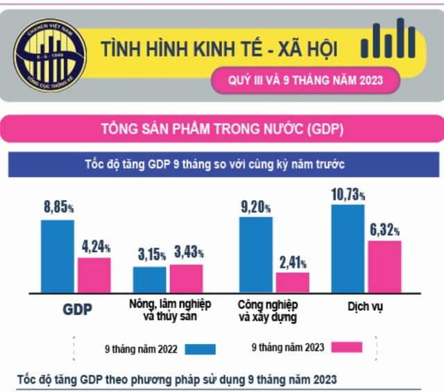 Tốc độ tăng GDP 9 tháng đầu năm 2023 so với cùng kỳ năm trước - Nguồn: Tổng cục Thống kê