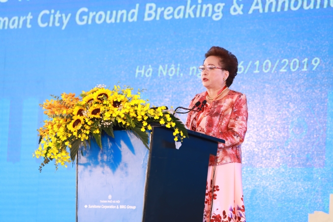 Madame Nguyễn Thị Nga phát biểu tại Lễ động thổ Dự án Thành phố thông minh Bắc Hà Nội