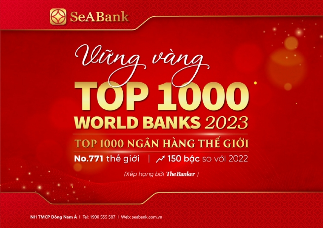 Với sự tăng trưởng vượt trội trong thời gian qua, SeABank tiếp tục vinh dự năm thứ 2 liên tiếp được vinh danh trong bảng xếp hạng “Top 1000 Ngân hàng thế giới 2023” với xếp hạng thứ 771, tăng 150 bậc so với năm 2022. Việc liên tục góp mặt trong bảng xếp hạng danh giá này hai năm liên tiếp đã khẳng định uy tín thương hiệu SeABank được giới tài chính quốc tế ghi nhận, đồng thời nâng tầm vị thế ngân hàng trong khu vực và trên quốc tế.