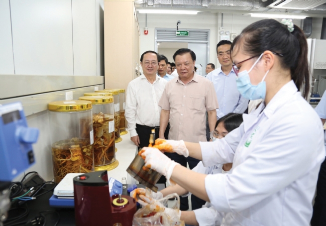 Bí thư Thành ủy Hà Nội Đinh Tiến Dũng, Bộ trưởng Bộ Khoa học và Công nghệ Huỳnh Thành Đạt khảo sát tại Khu Công nghệ cao Hòa Lạc