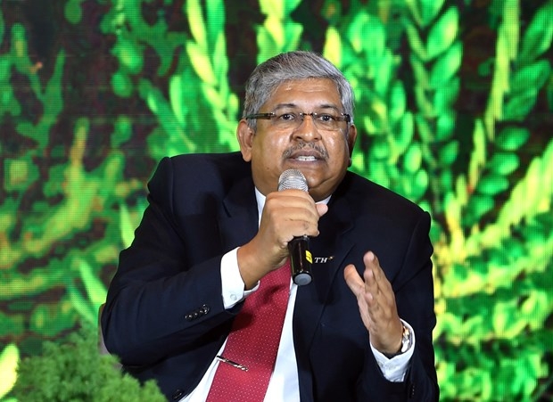 Ông Arghya Mandal, Tổng Giám đốc Công ty Cổ phần sữa TH chia sẻ về kinh nghiệm thực hành kinh tế xanh. (Ảnh: PV/Vietnam+)