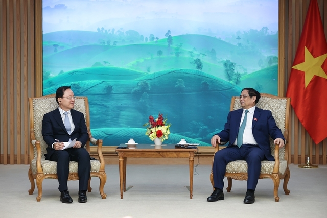 Thủ tướng Chính phủ Phạm Minh Chính tiếp ông Park Hark Kyu, Tổng Giám đốc phụ trách tài chính của Tập đoàn Samsung - Ảnh: VGP/Nhật Bắc