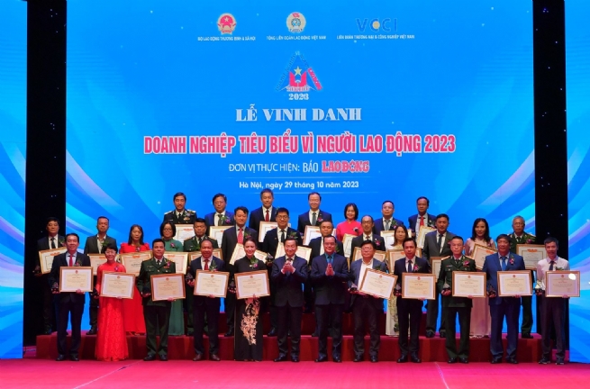 Vừa qua, tại Hà Nội, Tổng Liên đoàn Lao động Việt Nam phối hợp với Bộ Lao động - Thương binhvà Xã hội; Liên đoàn Thương mại và Công nghiệp Việt Nam (VCCI) tổ chức Lễ Vinh danh Doanh nghiệp tiêu biểu vì người lao động 2023.