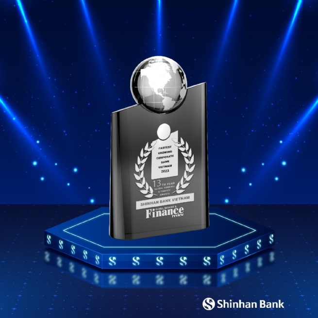 Ngân hàng Shinhan nhận giải thưởng “Ngân hàng doanh nghiệp phát triển nhanh nhất Việt Nam 2023” từ tạp chí Global Banking and Finance bình chọn, ghi nhận tăng trường mạnh mẽ về mảng kinh doanh doanh nghiệp