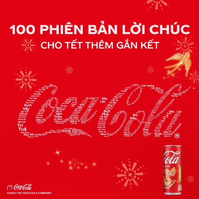 Trong dịp Tết năm nay, Coca-Cola hợp tác với nhà thiết kế đồ hoạ Tòn Bùi lần đầu tiên cho ra mắt thiết kế bao bì mới với hình ảnh Rồng Vàng bên cạnh cánh Én Vàng biểu tượng quen thuộc. Lấy cảm hứng từ những điểm đặc trưng của hình ảnh Rồng vào thời nhà Lý, biểu tượng Rồng trên thiết kế mới của Coca-Cola mang ý nghĩa cho sự phồn thịnh, lạc quan, mong đợi về một năm mới thịnh vượng và may mắn. Đồng thời, lần đầu tiên Coca-Cola cho ra mắt 100 phiên bản lon Tết với 100 lời chúc đặc biệt được in trên mỗi thân lon, gửi gắm thông điệp về một năm mới tươi đẹp, gắn kết và trọn vẹn. Giờ đây, người tiêu dùng đã có thể mua Coca-Cola phiên bản Tết Giáp Thìn tại các đại lý bán lẻ trên toàn quốc và trên các sàn thương mại điện tử. Thông tin chi tiết về chương trình khuyến mại vui lòng truy cập tại đây.
