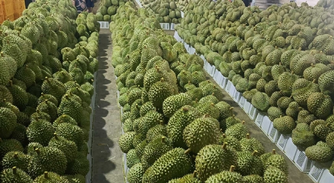 Sầu riêng đã được thu mua và chờ đóng gói xuất đi Trung Quốc tại kho ở Cai Lậy Tiền Giang