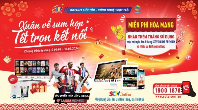 Để chào đón năm mới Giáp Thìn 2024, Truyền hình cáp SCTV đưa ra chương trình khuyến mãi “Xuân về sum họp – Tết trọn kết nối” cực kỳ hấp dẫn với nhiều ưu đãi cùng với nhiều quà tặng có giá trị.