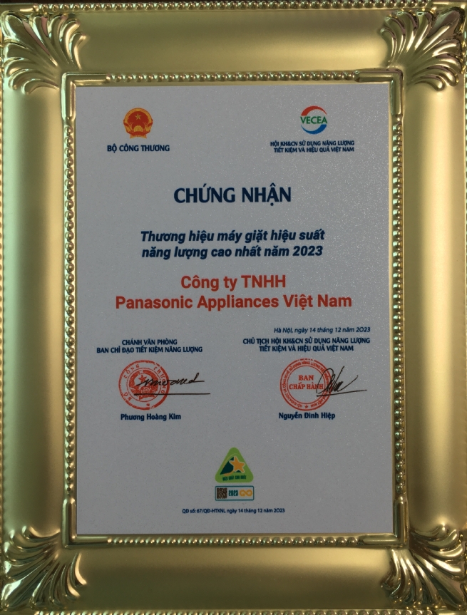 Vừa qua, công ty Panasonic Appliances Việt Nam đã được trao chứng nhận Sản phẩm Hiệu suất Năng lượng cao nhất năm 2023 cho sản phẩm Máy giặt và Tủ lạnh, do Bộ Công Thương trao tặng. Năm thứ 4 liên tiếp các sản phẩm gia đụng của Panasonic được chứng nhận hiệu suất tiết kiệm năng lượng và thân thiện với môi trường, một lần nữa khẳng định tầm nhìn của người khổng lồ Nhật Bản trong nỗ lực góp phần vì cuộc sống khỏe mạnh của người dân và sự bền vững của Việt Nam trên hành trình 50 năm tiếp theo.
