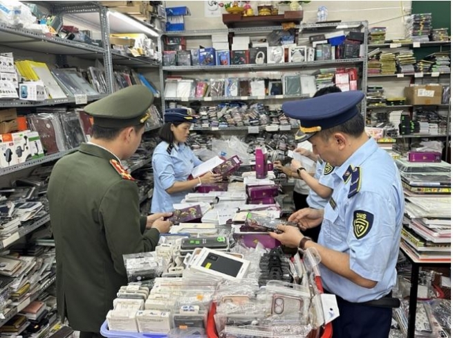 Qua kiểm tra, Đoàn kiểm tra phát hiện cơ sở kinh doanh đang bày bán 1.550 sản phẩm linh kiện điện thoại (500 cái kính cường lực, 1.050 cái ốp lưng điện thoại).