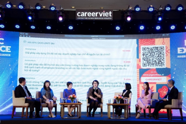 Phiên hội thảo với chủ đề “Holistic Excellence” - Xây dựng Thương hiệu tuyển dụng xuất sắc toàn diện với sự góp mặt của các lãnh đạo cấp cao của các doanh nghiệp hàng đầu tại Việt Nam như VinPearl, Techcombank, TH Food Chain, One Month, VNHR và PEP World wide cùng sự điều phối của ông Phạm Hồng Hải, Vice Chairman TVS đã mang đến nhiều thông tin thú vị về trong hành trình xây dựng thương hiệu tuyển dụng, văn hóa doanh nghiệp đặc sắc của từng doanh nghiệp.