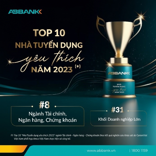 Bảng xếp hạng "Nhà tuyển dụng yêu thích" là một nghiên cứu khảo sát thường niên được thực hiện hoàn toàn độc lập bởi công ty mạng lưới việc làm và tuyển dụng CareerViet Việt Nam cùng đơn vị nghiên cứu thị trường - Amco Việt Nam từ năm 2013 đến nay. Khảo sát này được thực hiện phi lợi nhuận và minh bạch trên nhiều tiêu chí, đặc biệt tập trung vào các đánh giá của đáp viên đối với công tác tuyển dụng và tạo dựng thương hiệu tuyển dụng của các doanh nghiệp. Năm 2023, kết quả khảo sát được thực hiện với sự tham gia của hơn 310 doanh nghiệp và gần 40.000 đáp viên thuộc nhiều độ tuổi, ngành nghề trên toàn quốc. Cũng trong năm này, ABBANK cũng vinh dự được người lao động bình chọn vị trí 31/100 Nhà tuyển dụng được yêu thích Khối doanh nghiệp lớn, ghi nhận một sự nhảy bậc lớn so với kết quả kỳ khảo sát đầu tiên mà ABBANK tham gia năm 2021 (91/100).