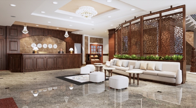 Sảnh lễ tân đón khách của khách sạn The HUB by Hotel Academy Việt Nam