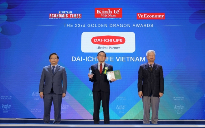 Công ty Bảo hiểm Nhân thọ Dai-ichi Việt Nam (Dai-ichi Life Việt Nam) đã vinh dự đạt danh hiệu “Doanh nghiệp phát triển bền vững” trong Lễ trao Giải thưởng Rồng Vàng 2024, do Tạp chí Kinh tế Việt Nam - VnEconomy - Vietnam Economic Times phối hợp với Cục Đầu tư Nước ngoài - Bộ Kế hoạch Đầu tư, Bộ Ngoại giao tổ chức tại Trung tâm Hội nghị TP. Hải Phòng mới đây.