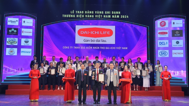 Mới đây, Công ty Bảo hiểm Nhân thọ Dai-ichi Việt Nam (Dai-ichi Life Việt Nam) tự hào được trao danh hiệu “Top 10 Thương Hiệu Vàng Việt Nam năm 2024” và Tổng Giám đốc Dai-ichi Life Việt Nam - ông Đặng Hồng Hải vinh dự nhận giải thưởng “Doanh Nhân Xuất Sắc Việt Nam năm 2024” trong chương trình “Doanh Nghiệp Vì Quyền Lợi Người Tiêu Dùng”, do Viện Kinh tế và Văn hóa phối hợp với Trung tâm Bảo vệ Người Tiêu Dùng tổ chức tại Hà Nội.