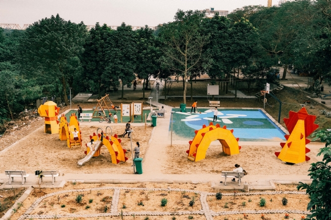 Sân chơi Phúc Tân - công trình đầu tiên hưởng lợi từ chiến dịch Bình minh xanh “Biến bãi rác thành sân chơi” do MB khởi xướng