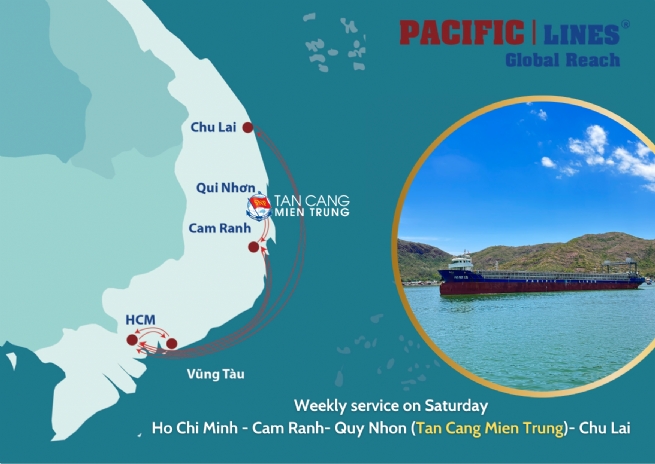 Ngày 13/8/2024, Cảng Tân Cảng Miền Trung đã chính thức đón tàu Phú Quý 126 trong tuyến dịch vụ nội địa của Pacific Lines chạy định tuyến hàng tuần từ TP. Hồ Chí Minh- Cam Ranh- Quy Nhơn (Tân Cảng Miền Trung)- Chu Lai (Quảng Nam) và ngược lại. Việc khai thác mở tuyến tàu container tại cảng TCMT, hãng tàu Pacific Lines đang muốn thay đổi thói quen của khách hàng, từ vận chuyển đường bộ ở khu vực Bình Định và Tây Nguyên vào TP Hồ Chí Minh xuất tàu sang hình thức vận chuyển đường biển nhằm giảm áp lực hạ tầng đường bộ, tăng tính kết nối hàng hóa tại khu vực miền Trung – Tây Nguyên. Sau khi có chuyến adhoc vào ngày 11/07/2024 vừa qua, hãng tàu đã đặt niềm tin và quyết định hợp tác triển khai tuyến dịch vụ và kỳ vọng sẽ giúp kết nối gia tăng thị phần vận chuyển hàng hóa chuyển cảng nội địa bằng đường thủy, cân bằng Rỗng của hãng tàu tại khu vực miền trung cũng như phát triển hàng hóa xuất nhập khẩu bằng đường biển.