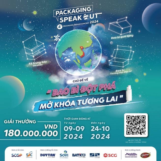Với chủ đề “Bao bì đột phá, mở khóa tương lai”, cuộc thi Packaging Speak Out 2024 - Việt Nam khẳng định cam kết của SCGP trong việc tái thiết ngành bao bì Việt Nam thông qua các sáng kiến đổi mới và phát triển bền vững. Theo đó, thí sinh tham dự cuộc thi có thể sử dụng các chất liệu như giấy, nhựa hoặc kết hợp cả hai chất liệu vào thiết kế với điều kiện đảm bảo sự phù hợp nhận diện sản phẩm thuộc hai thương hiệu Mondelez Kinh Đô và Barona - Nam Phương Food. Các hạng mục cuộc thi bao gồm: