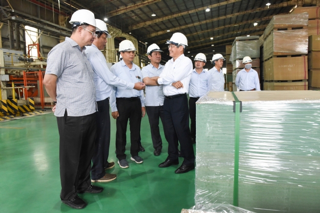 Ông Trần Công Kha – Bí thư Đảng ủy, Chủ tịch HĐQT VRG cùng lãnh đạo VRG thăm nhà máy chế biến gỗ Công ty CP Gỗ MDF VRG Kiên Giang