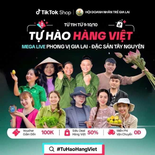 “Tự hào hàng Việt” là một trong những sáng kiến nổi bật của TikTok Shop phối hợp Bộ Công Thương, Cục Xúc tiến thương mại Việt Nam, Cục Thương mại điện tử và Kinh tế số, và Hiệp hội Thương mại điện tử Việt Nam (VECOM) khởi xướng, nhằm trang bị kỹ năng và hỗ trợ chuyển đổi số cho cộng đồng doanh nghiệp siêu nhỏ, nhỏ và vừa (MSME) và các tiểu thương Việt Nam. Mới đây, phiên livestream #TuHaoHangViet với chủ đề “Phong vị Gia Lai, đặc sản Tây Nguyên” đã diễn ra trong 2 ngày 9,10/10 với sự tham gia của hàng loạt nhà sáng tạo như @huyenphi_97, @thiennhanreview,... Sau 2 ngày livestream, chiến dịch đã thành công thu về 12,7 nghìn đơn hàng cho các sản phẩm nông sản tiêu biểu của tỉnh Gia Lai như Mật ong đa hoa Phương Di, Bò khô Huy Vũ, Tiêu Lệ Chí,... Kết quả ấn tượng của hai phiên livestream cũng cho thấy triển vọng của các nhà bán hàng địa phương trong việc đổi mới tư duy kinh doanh và trang bị những kỹ năng phục vụ cho công tác chuyển đổi số.