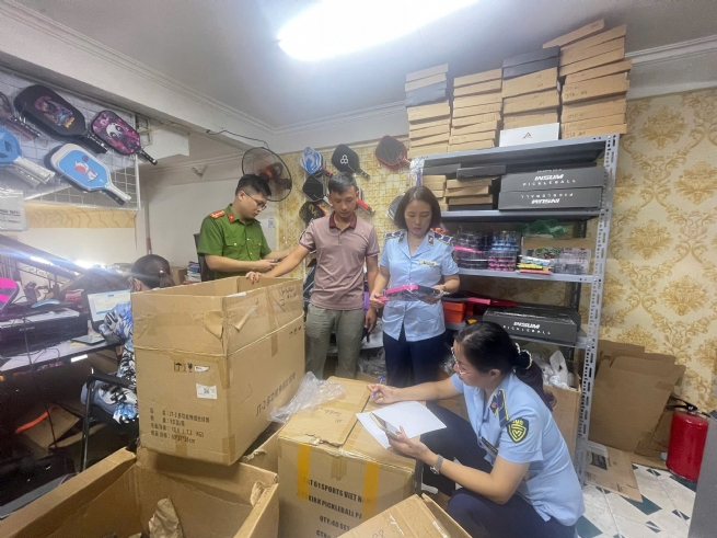 Tại thời điểm kiểm tra, Đoàn kiểm tra phát hiện, tạm giữ 393 chiếc vợt, bóng, túi đựng vợt có dấu hiệu giả mạo nhãn hiệu Franklin, Engage đang được bảo hộ tại Việt Nam có trị giá 83.110.000 đồng và 3.337 chiếc vợt, bóng và dụng cụ pickleball nhập lậu có trị giá 355.560.000 đồng.