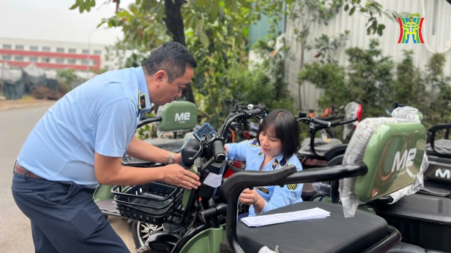 Chiều 5/11, Tổng cục QLTT thông tin, ngày 5/11, Phòng Nghiệp vụ 1, Cục Nghiệp vụ QLTT phối hợp với Phòng Cảnh sát điều tra tội phạm về tham nhũng, kinh tế, buôn lậu, môi trường (Công an TP Hà Nội); Đội QLTT số 8, Cục QLTT TP Hà Nội; Đội Cảnh sát kinh tế, Công an huyện Gia Lâm và Công an thị trấn Trâu Quỳ đột xuất kiểm tra Hộ kinh doanh xe điện M.P, tại đường Ngô Xuân Quảng, thị trấn Trâu Quỳ. Hộ kinh doanh do bà N.T.D, SN 1994, trú quán tại Phú Thọ làm chủ.