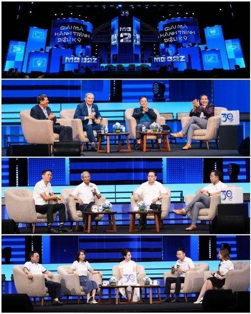 Ngay sau đó, những yếu tố làm nên sức mạnh khác biệt của MB được Đại tá Lê Văn Bé – Nguyên Phó Chủ tịch thứ nhất HĐQT, Nguyên Tổng giám đốc, Thiếu tướng Lê Công – Nguyên Phó Chủ tịch HĐQT, Nguyên Tổng giám đốc, ông Phạm Như Ánh – Thành viên HĐQT, Tổng giám đốc cùng Chủ tịch HĐQT Lưu Trung Thái giải mã. Đặc biệt, các nguyên lãnh đạo và lãnh đạo đã chia sẻ những cảm xúc, những điều tự hào nhất về MB và gửi gắm kỳ vọng đến lớp trẻ MB hiện nay.