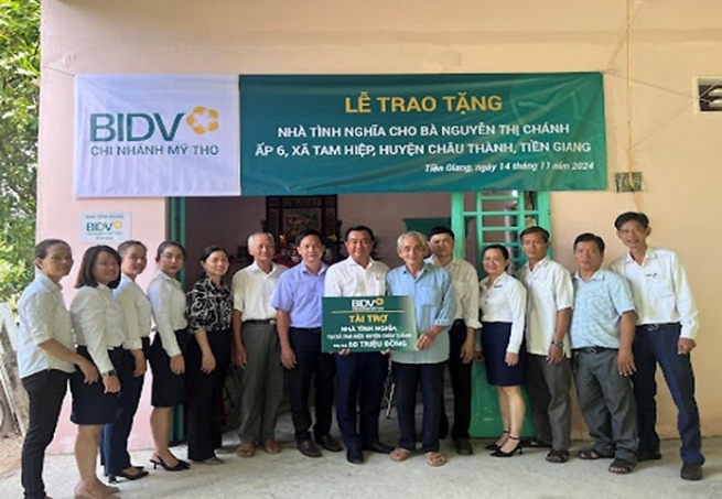 BIDV Mỹ Tho trao tặng căn nhà tình nghĩa cho bà Nguyễn Thị Chánh là thương binh hạng 4/4 ở ấp 6, xã Tam Hiệp, huyện Châu Thành, tỉnh Tiền Giang