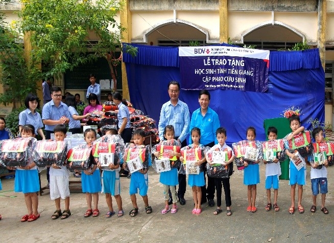 BIDV Mỹ Tho trao tặng cặp phao cho học sinh huyện Cái Bè, tỉnh Tiền Giang