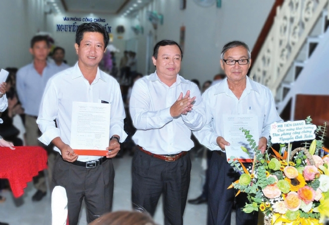 Công chứng viên Nguyễn Anh Tuấn - Trưởng Văn phòng (ngoài cùng bên phải) và Công chứng viên Phạm Mạnh Cường (ngoài cùng bên trái)
