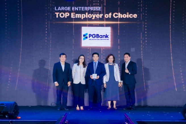 Mới đây, Ngân hàng TMCP Thịnh vượng và Phát triển (PGBank), được vinh danh ở 3 hạng mục quan trọng tại lễ trao giải "Nhà tuyển dụng yêu thích – Employer of Choice 2024". Cụ thể, PGBank lọt Top 10 Nhà tuyển dụng được nhân viên nội bộ yêu thích - Khối DN Lớn, Top 10 Nhà tuyển dụng được yêu thích ngành Tài chính - Ngân hàng - Chứng khoán Khối DN Lớn, Top Nhà tuyển dụng được yêu thích - Khối Doanh nghiệp Lớn.