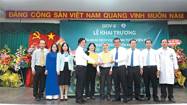 Hiện, BIDV Mỹ Tho đang tích cực đồng hành cùng Bệnh viện Trung tâm đa khoa tỉnh Tiền Giang và Tập đoàn FPT triển khai hiệu quả Đề án thanh toán viện phí không dùng tiền mặt. Từ đó, gia tăng tiện ích, nâng cao độ hài lòng cho bệnh nhân và người nhà khi sử dụng các dịch vụ.