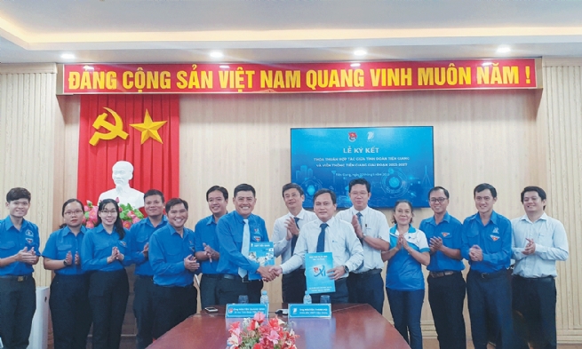 Lãnh đạo Tỉnh đoàn và VNPT Tiền Giang ký kết thỏa thuận hợp tác giai đoạn 2023 - 2027