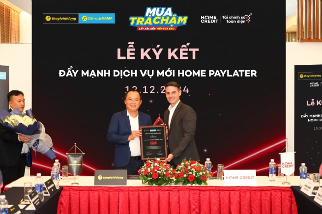 Mới đây, Home Credit Việt Nam và Thế Giới Di Động (MWG) chính thức ký kết hợp tác toàn diện với sản phẩm Home PayLater nhằm cung cấp cho người dùng chính sách “Mua trả chậm - lấy xài liền - tiền trả sau” trên toàn hệ thống Thế Giới Di Động. Cột mốc đánh dấu bước tiến quan trọng trong mối quan hệ hợp tác giữa hai bên, đồng thời mở ra thêm cơ hội cho người tiêu dùng tại Việt Nam trong việc mua sắm và thanh toán các mặt hàng điện tử, đồ gia dụng thông minh chính hãng chất lượng cao.