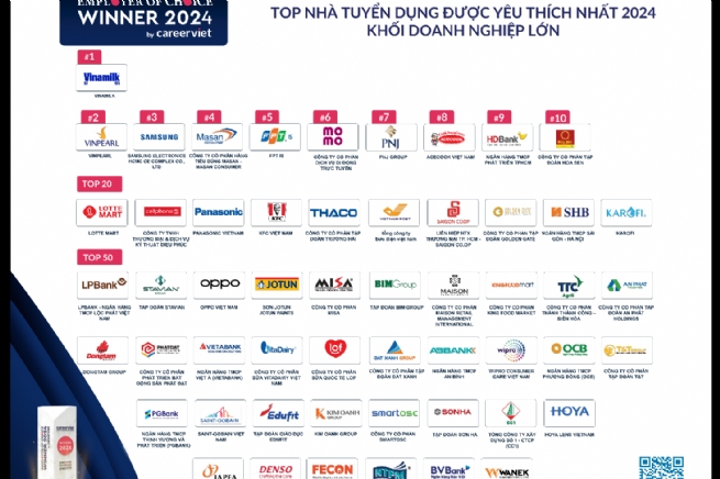Chi tiết kết quả khảo sát và danh sách vinh danh tham khảo thêm tại đây: https://careerviet.vn/employerofchoice-winner-2024