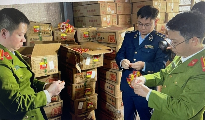 Đội Quản lý thị trường số 17 phối hợp với Đội 7-PC03 Công an thành phố Hà Nội kiểm tra, phát hiện trên 13 tấn thực phẩm bao gói sẵn có dấu hiệu là hàng hóa nhập lậu, gồm xúc xích, kẹo và các sản phẩm từ thịt động vật...