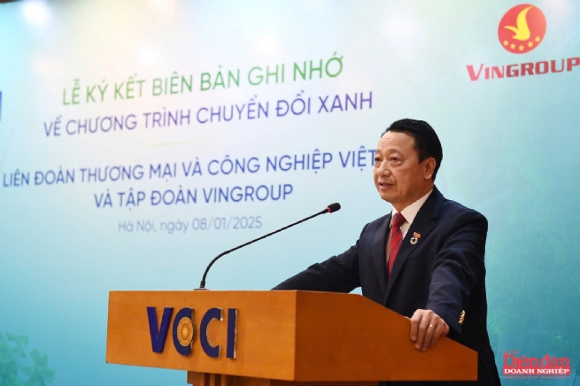 Chuyển đổi xanh nằm trong tiến trình đó. Không một doanh nghiệp nào có thể giải quyết được mà cần có sự phối hợp, kết nối cùng nhau. Với ý nghĩa đó, sự đồng hành của tập đoàn Vingroup - tập đoàn tiên phong thực hiện trách nhiệm xã hội và có tầm ảnh hưởng lớn - cùng với vai trò điều phối của VCCI góp phần hiện thực hoá các mục tiêu chung, mang lại lợi ích thiết thực cho nền kinh tế, cộng đồng doanh nghiệp Việt Nam, trong đó có nhiều doanh nghiệp trong chuỗi giá trị toàn cầu.