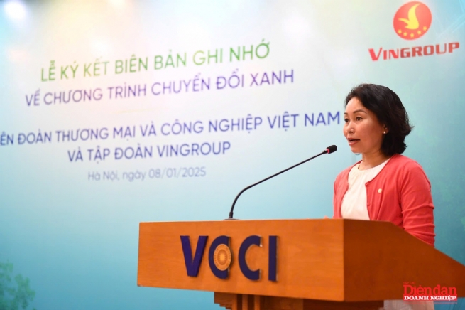 “Biên bản ghi nhớ được ký kết giữa Vingroup và VCCI khẳng định mạnh mẽ về quyết tâm hành động của chúng ta với sứ mệnh phát triển xanh và bền vững. Vingroup nhận thức rõ trách nhiệm, vai trò tiên phong của mình trong việc đồng hành cùng cộng đồng doanh nghiệp nói riêng và cả xã hội nói chung trong công cuộc chuyển đổi xanh. Chúng tôi tin tưởng rằng sự hợp tác giữa Vingroup và VCCI sẽ tạo ra sức mạnh cộng hưởng, lan tỏa những giá trị tích cực, góp phần đưa nền kinh tế Việt Nam vững vàng bước vào kỷ nguyên phát triển bền vững” - bà Lê Thị Thu Thủy, Phó Chủ tịch Tập đoàn Vingroup kiêm Chủ tịch công ty Vinfast chia sẻ.